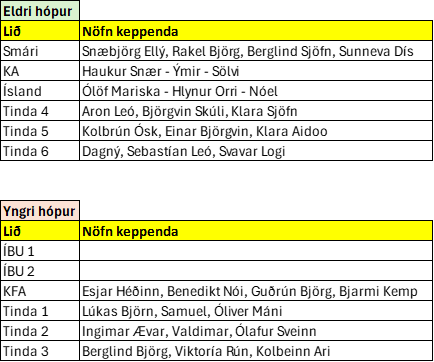 Hér að neðan má sjá hvernig liðin skiptast og hvenær þau spila.